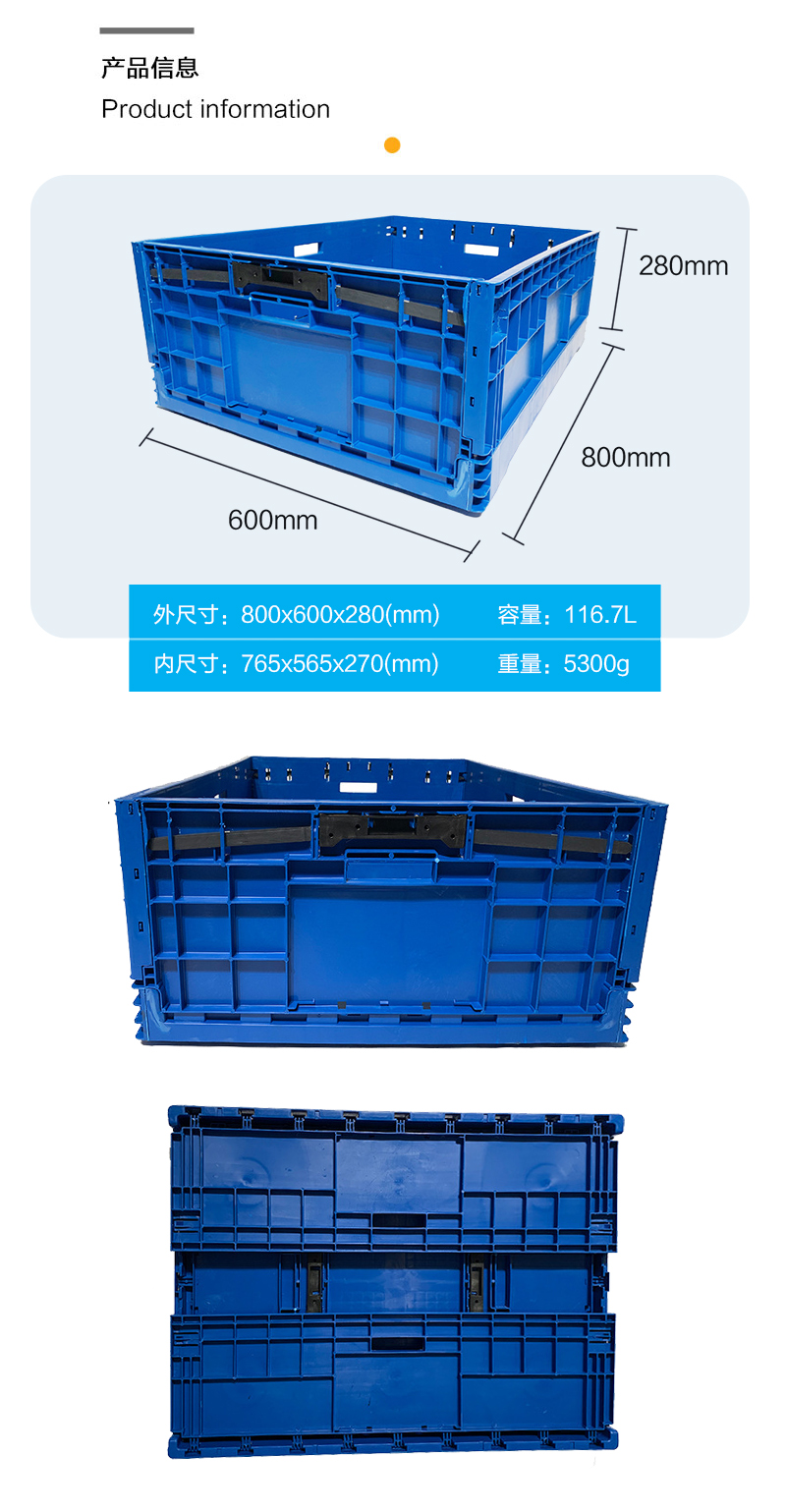 外尺寸:800*600*280mm 內(nèi)尺寸:765*565*270mm 材質(zhì):PP 重量:5300g