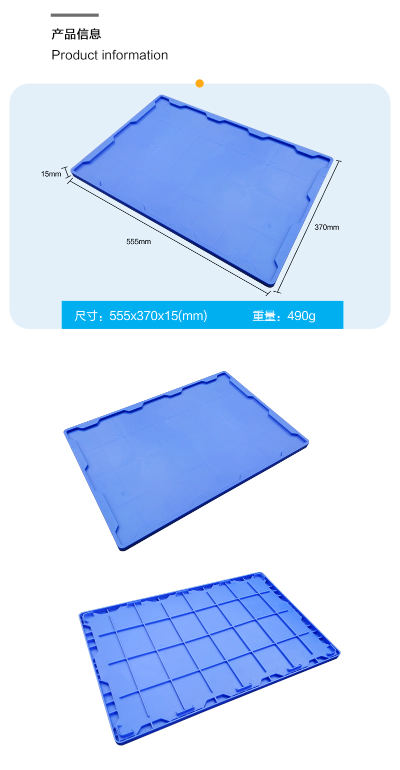 外尺寸:555*370*15mm 內(nèi)尺寸:—— 材質(zhì):PP 重量:490g