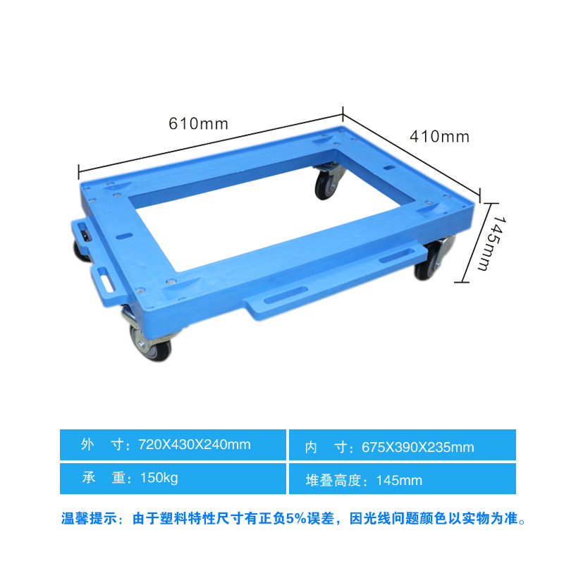 外尺寸:610×410×145mm 內(nèi)尺寸:560×360mm 材質(zhì):PP 重量:3100g