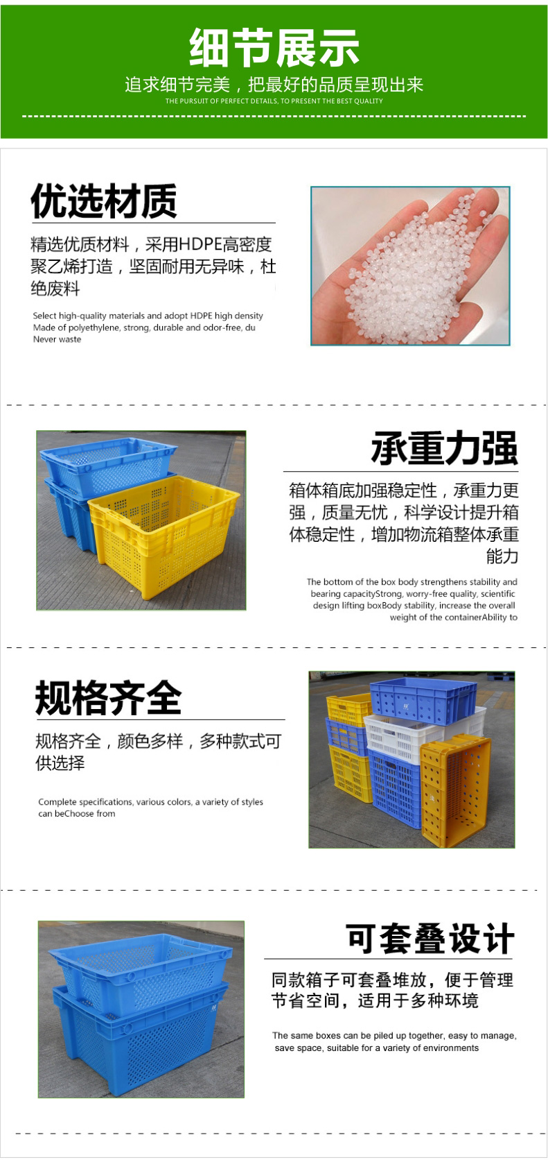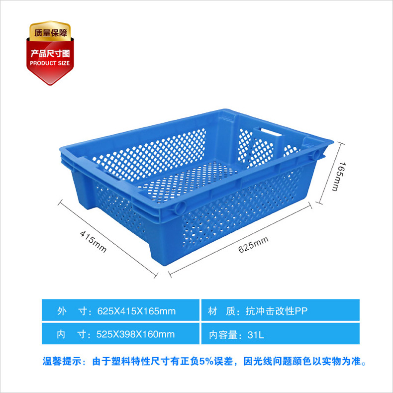 外尺寸:625×415×165mm 內尺寸:525×398×160mm 材質:抗沖擊改性PP 重量:1850