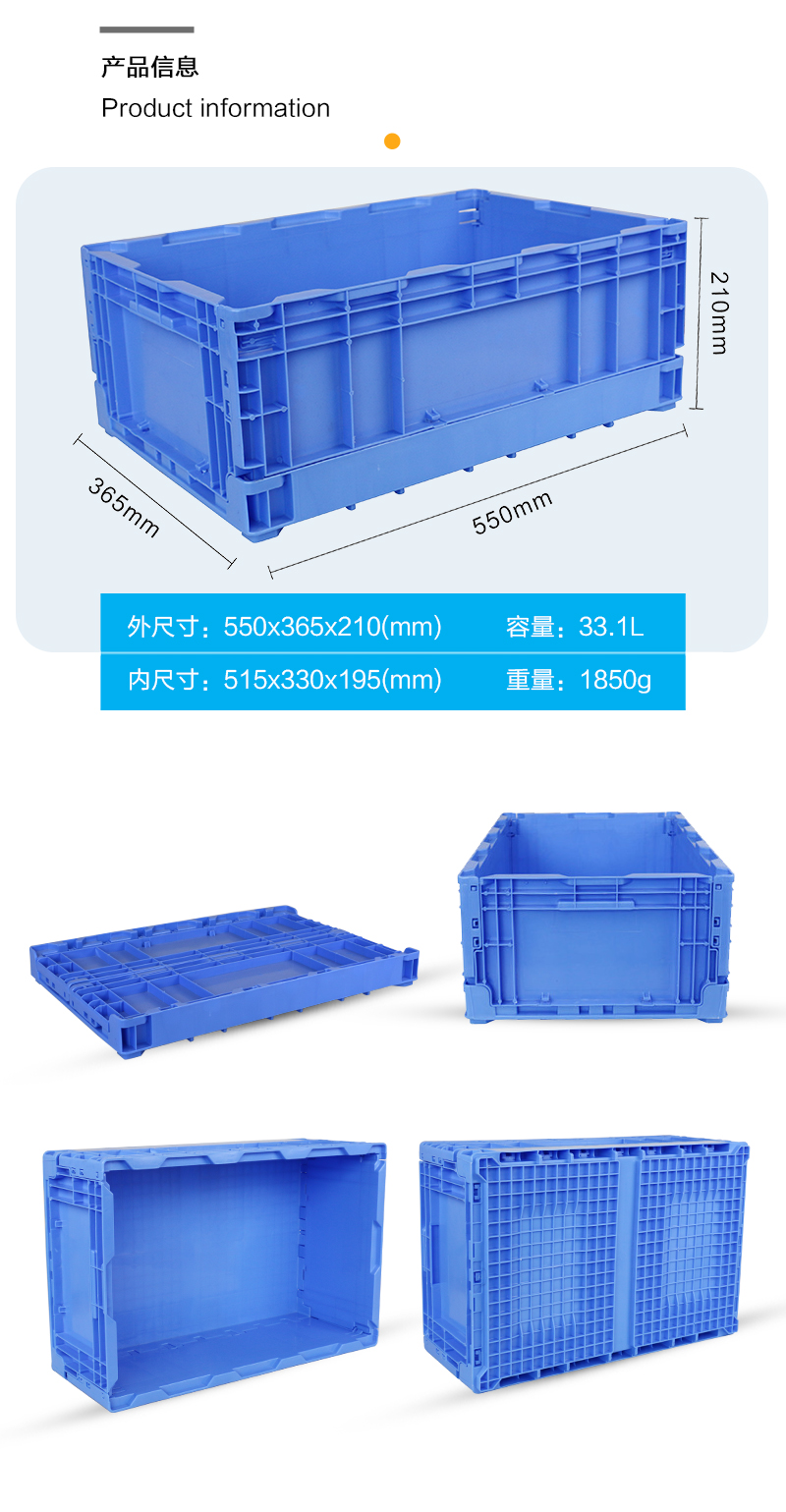 外尺寸:550*365*210mm 內(nèi)尺寸:515*330*195mm 材質(zhì):抗沖擊改性PP 重量:1850g