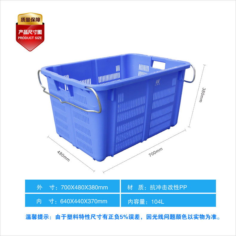 外尺寸:700*480*380mm 內(nèi)尺寸:640*440*370mm 材質(zhì):抗沖擊改性PP 重量:--