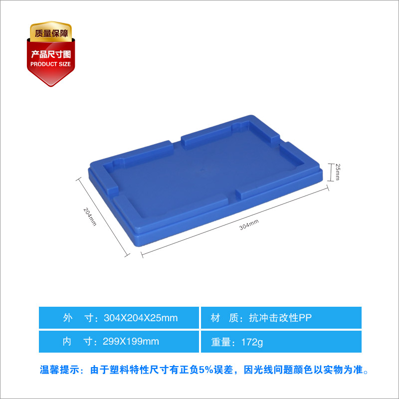 外尺寸:304*204*25mm 內(nèi)尺寸:299*199 材質(zhì):抗沖擊改性PP 重量:172g