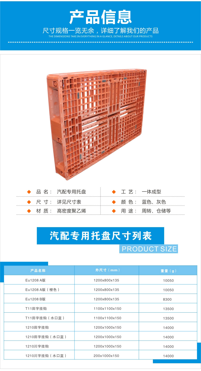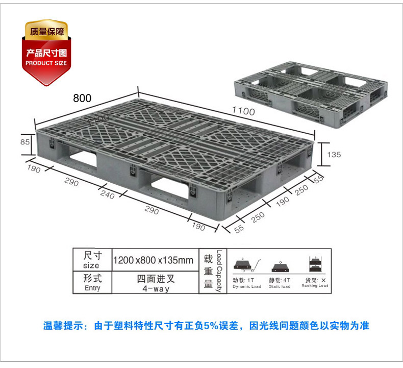 外尺寸:1200*800*135mm 內(nèi)尺寸:- 材質(zhì):抗沖擊改性PP 重量:10050g
