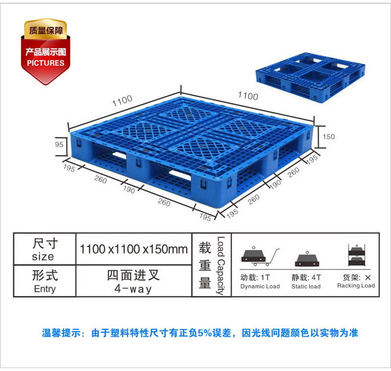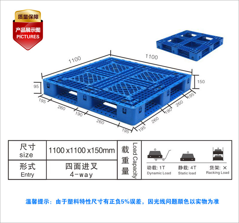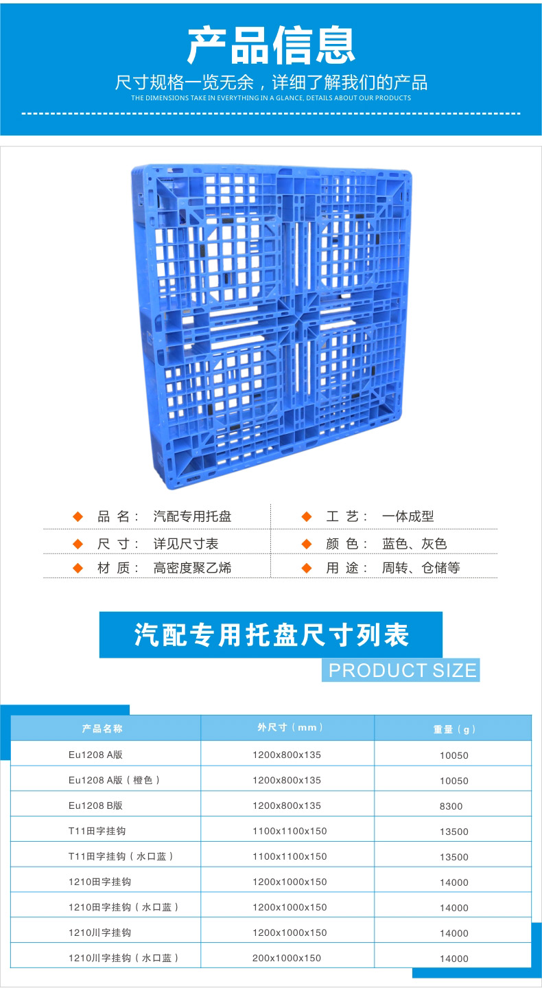 外尺寸:1100*1100*150mm 內(nèi)尺寸:-- 材質(zhì):抗沖擊改性PP 重量:13500g