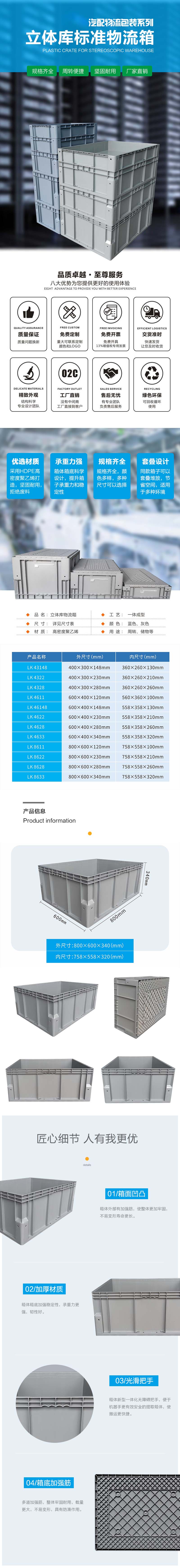 外尺寸:800*600*340mm 內(nèi)尺寸:758*558*320mm 材質(zhì):PP 重量:4700g